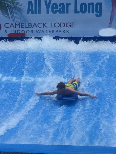 Camelback Resort Lodge and Aquatopia Indoor Waterpark This year for Christmas, my dad bought my husband a racing experience in the Poconos on the Pocono Speedway. As excited he was, I thought about what it would be like to ride 4 1/2 hours in the car one way, then watching my husband train and drive a race car for 3 hours, then drive back another day another 4 1/2 hours. I imagined the comments from the children-“What do we get to do?” “This is boring!” “Why does Dad get to have all the fun?”