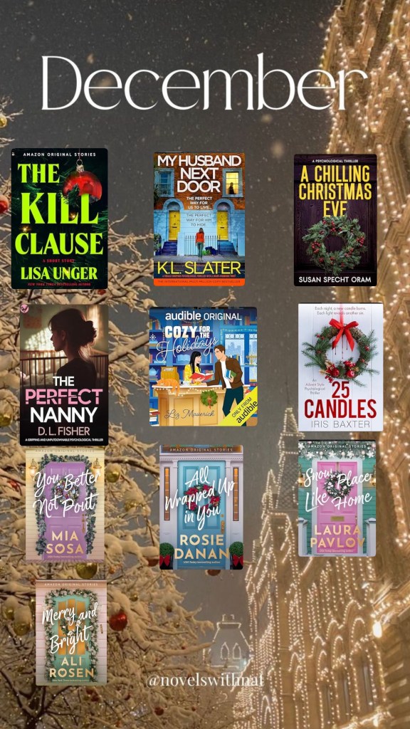 I read a few full length books and several Christmas novellas…..some about romance and some about murder……none that were that memorable but they passed the time running errands and riding in the car! Fit in ten books for December…….Onto 2026!!!